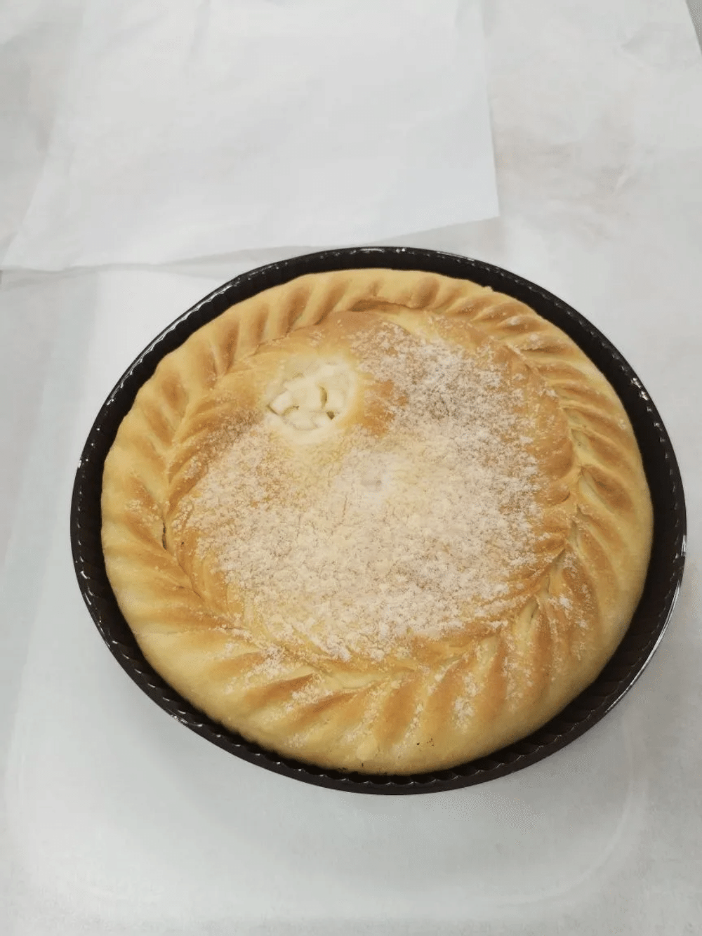 Тесто песочно-дрожжевое (мука, яйца, спред, сахар, соль, вода, дрожжи), яблоки очищенные, сахар, ванилин, спред