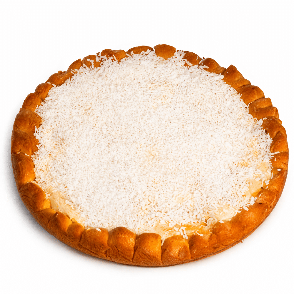 Тесто песочно-дрожжевое (мука, яйца, спред, сахар, соль, вода, дрожжи), начинка рафаэлло, сметана, кокосовая стружка