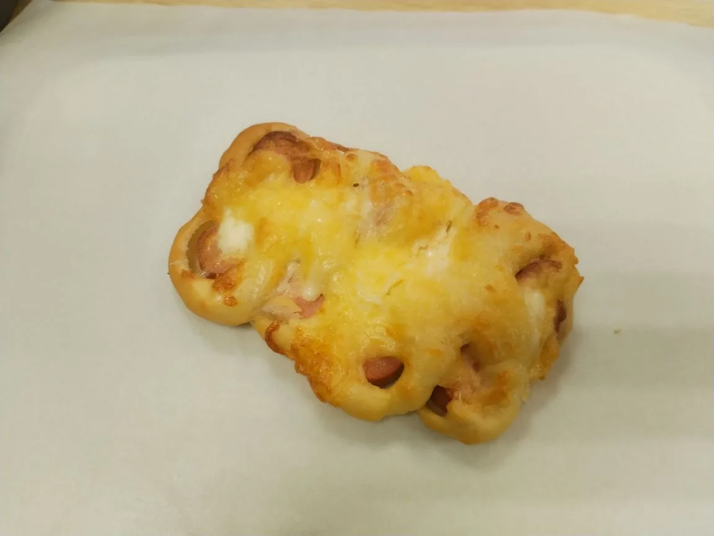 Тесто дрожжевое (мука, дрожжи, сахар, соль, сметана, масло подсолнечное, спред, яйца), сосиска, сыр, майонез