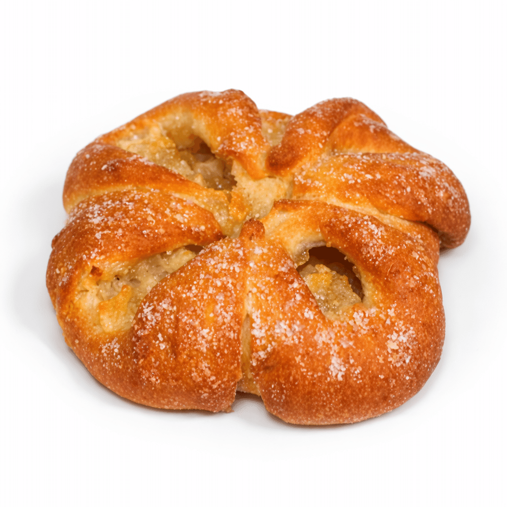 Тесто песочно-дрожжевое (мука, яйца, спред, сахар, соль, вода, дрожжи), яблоки очищенные, сахар, ванилин, спред