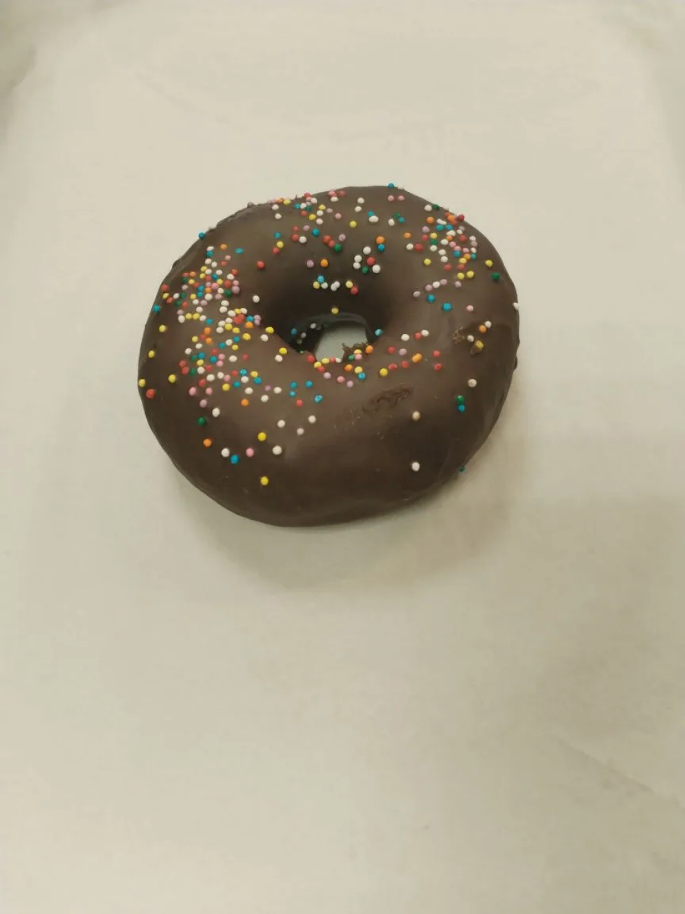 Тесто бриошь (мука, сахар, соль, яйцо, спред, ванилин, дрожжи), шоколад молочный, цветная посыпка